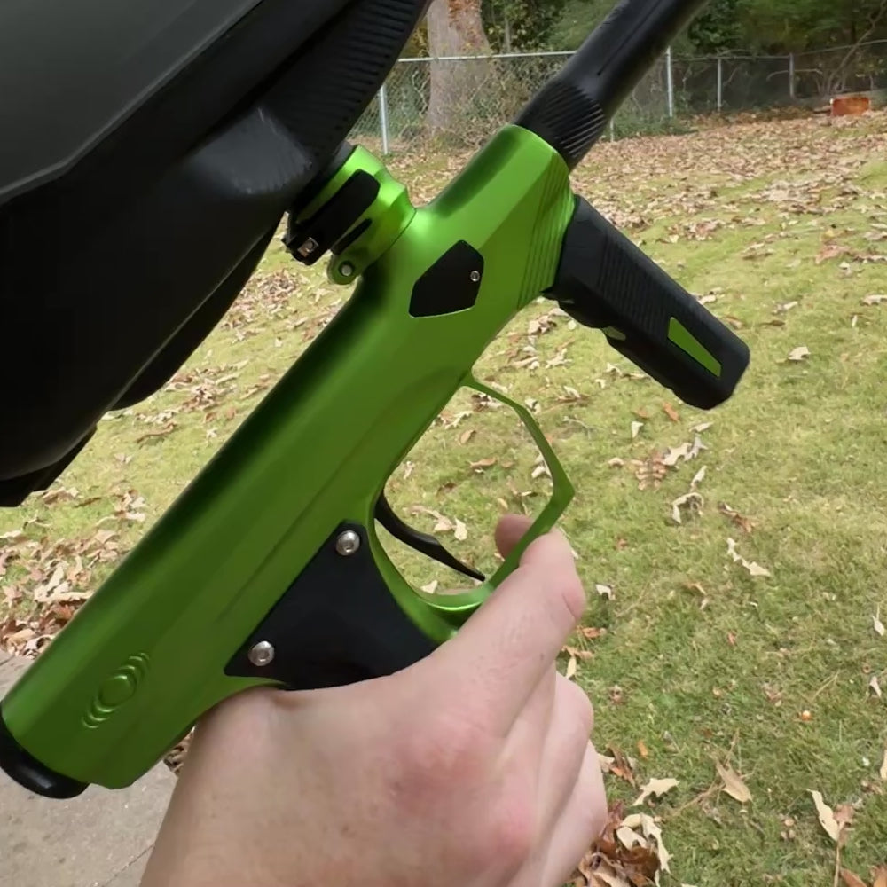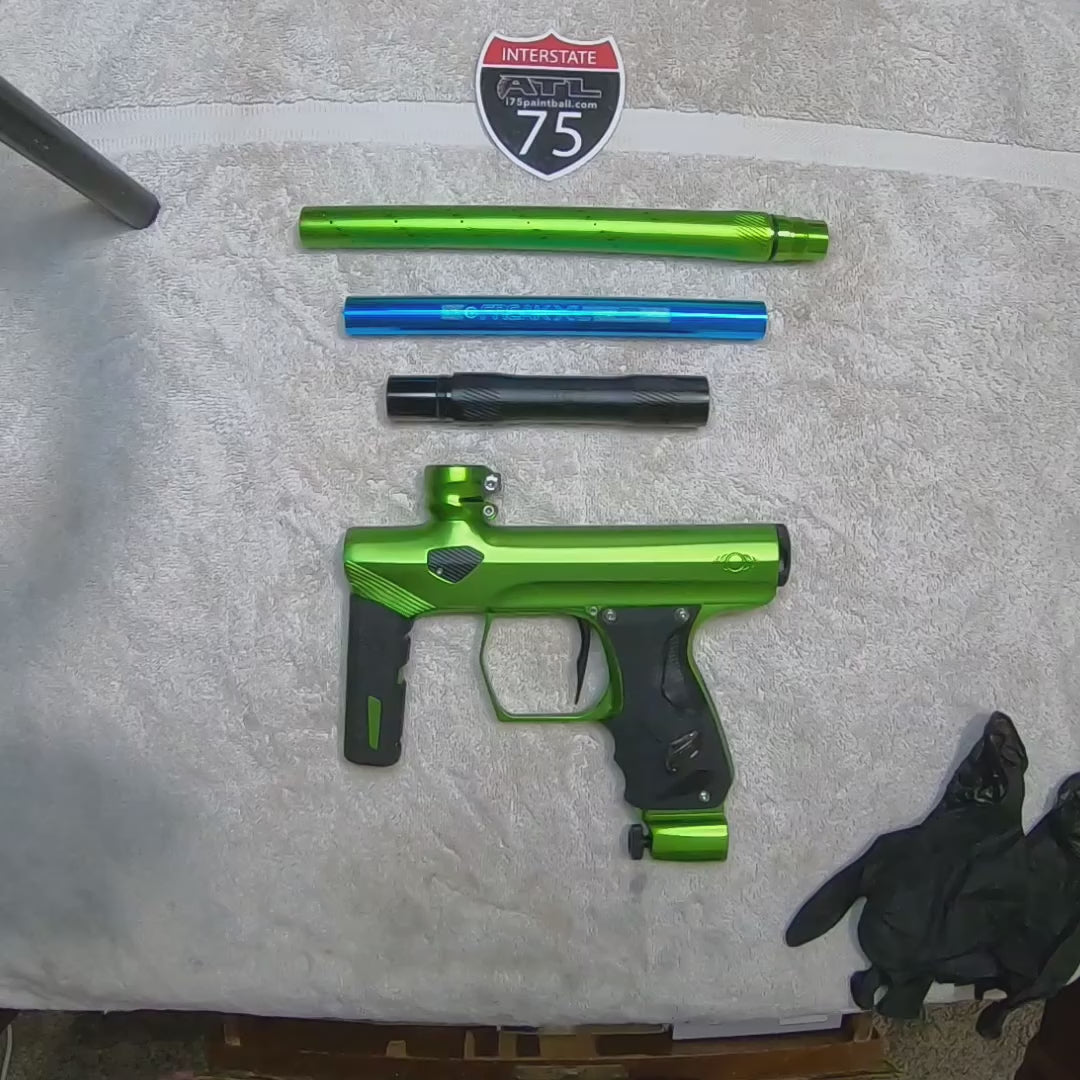 Photos shown are photos of the actual item you receive. This marker is game used and may have cosmetic imperfections. All used equipment is sold in 100% working order. Includes case, grease, tools, parts kit, barrel sleeve and .688 insert.