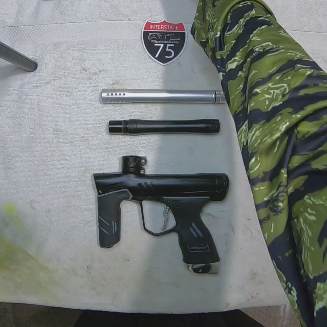 Photos shown are photos of the actual item you receive. This marker is game used and may have cosmetic imperfections. All used equipment is sold in 100% working order. Includes case, grease, tools, parts kit, and .688 barrel back.